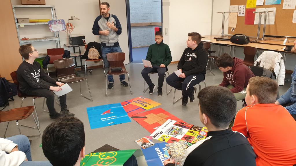 Tag 1: Spax stellt sich vor. Spax spricht sehr offen und teilt seine Erfahrungen mit uns. Wir berichten von unseren Erlebnissen. Wir sprechen über verschiedene „Schubladen“, Ausgrenzungen, Verschiedenheit und Gleichheit (Würde) der Menschen.
